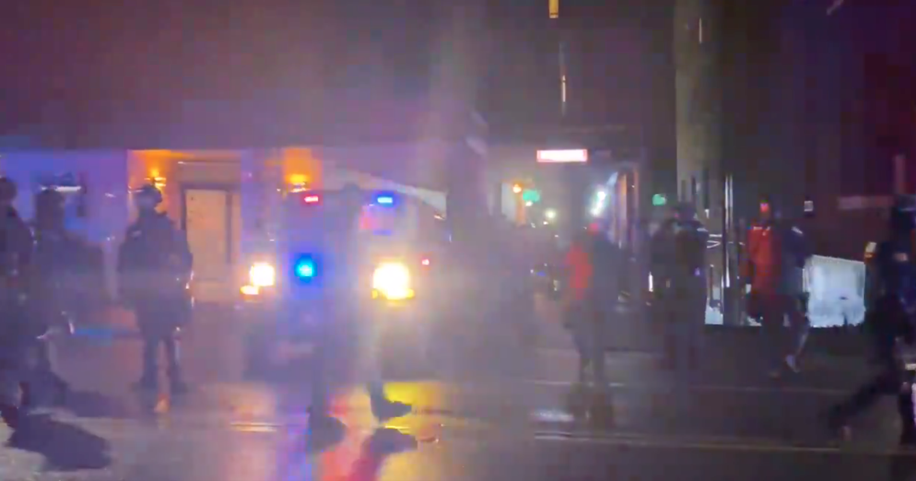 Videos on social media showed a crowd chanting and harassing police officers.