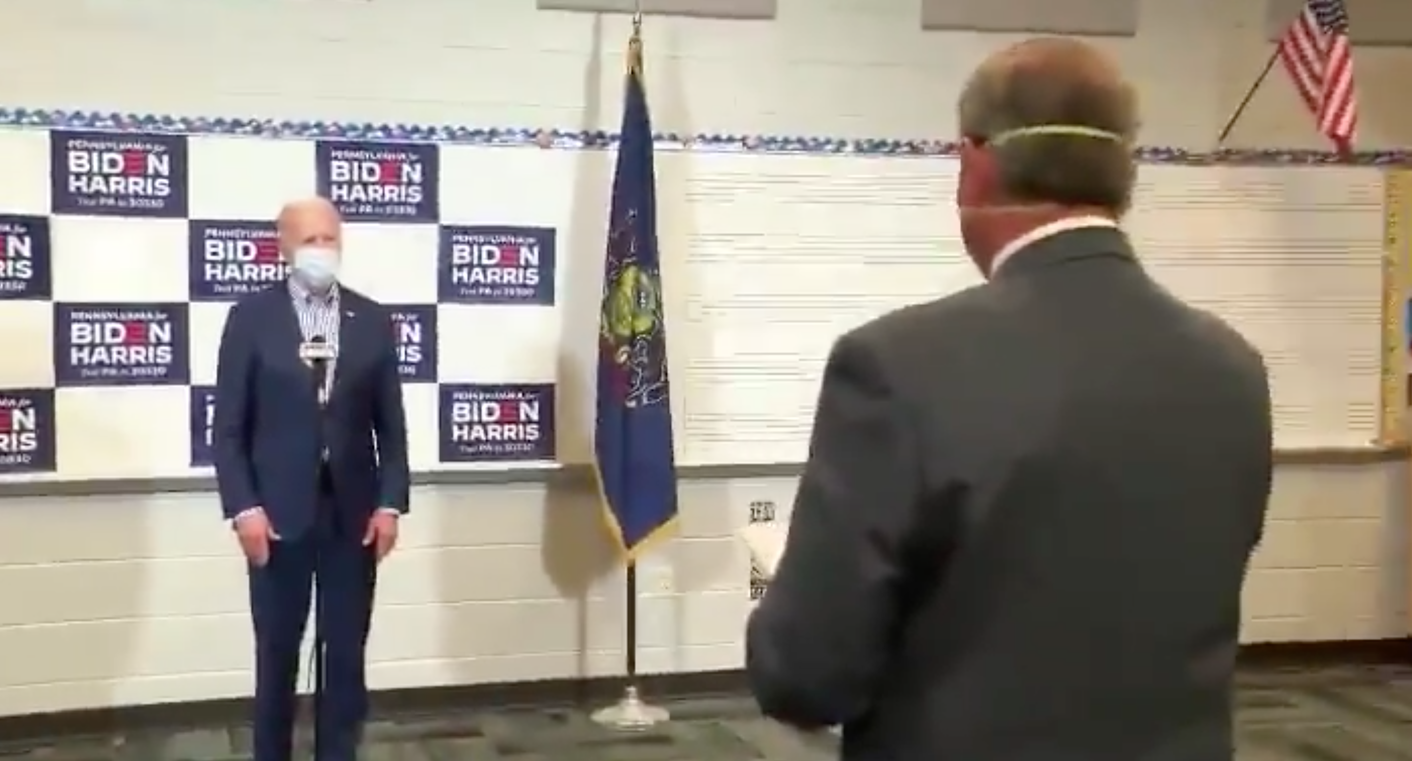 “But it’s classic Trump, classic Trump,” Biden continued. “Because he doesn’t want to talk about how manufacturing has gone into recession, how our economy’s in a hole, how we’re approaching a bleak winter. It’s estimated 200,000 more people will die of COVID if we don’t act more rapidly in terms of dealing with rational basis of social distancing, wearing masks, etc.”