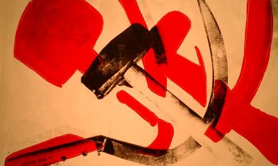 The vandals scrawled a hammer and sickle and wrote “Elections, no. Revolutions, yes."