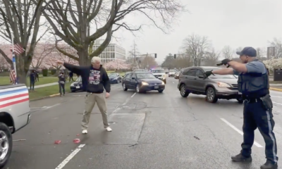You can see in this second angle the man only pulled his gun after being aggressively attacked with pepper spray for a second time (at least)...