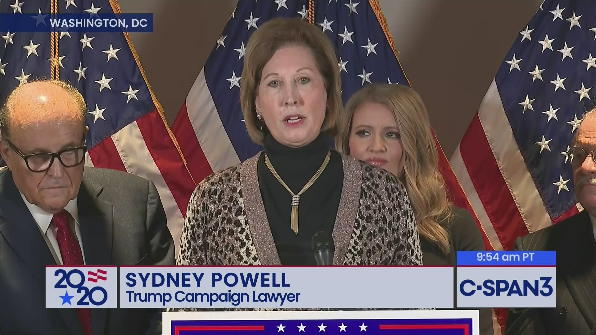 Powell alleged a transnational conspiracy involving the “influence of communist money” from countries including Cuba, Venezuela, and “likely China” to overturn the presidential race via election software.