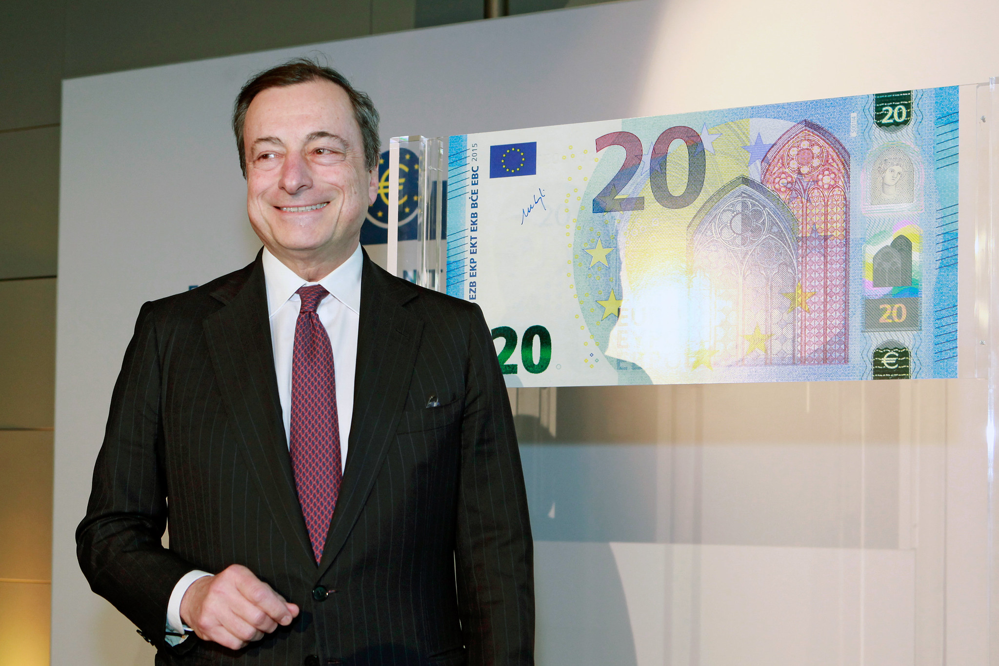 Mario Draghi presenting the new €20 banknote | European Central Bank/Flickr